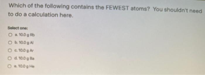 I Need To Know Which Has The Fewest Atoms Brainly Com