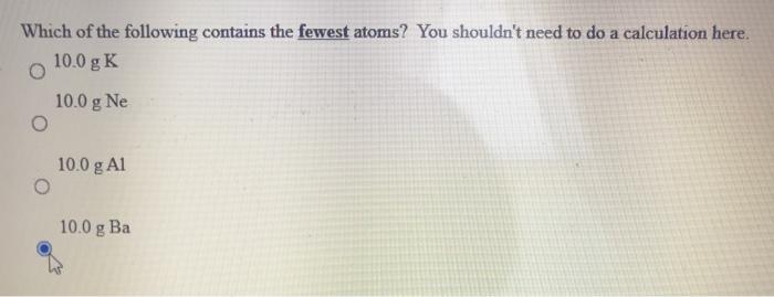 Solved Which Of The Following Contains The Fewest Atoms You Chegg Com